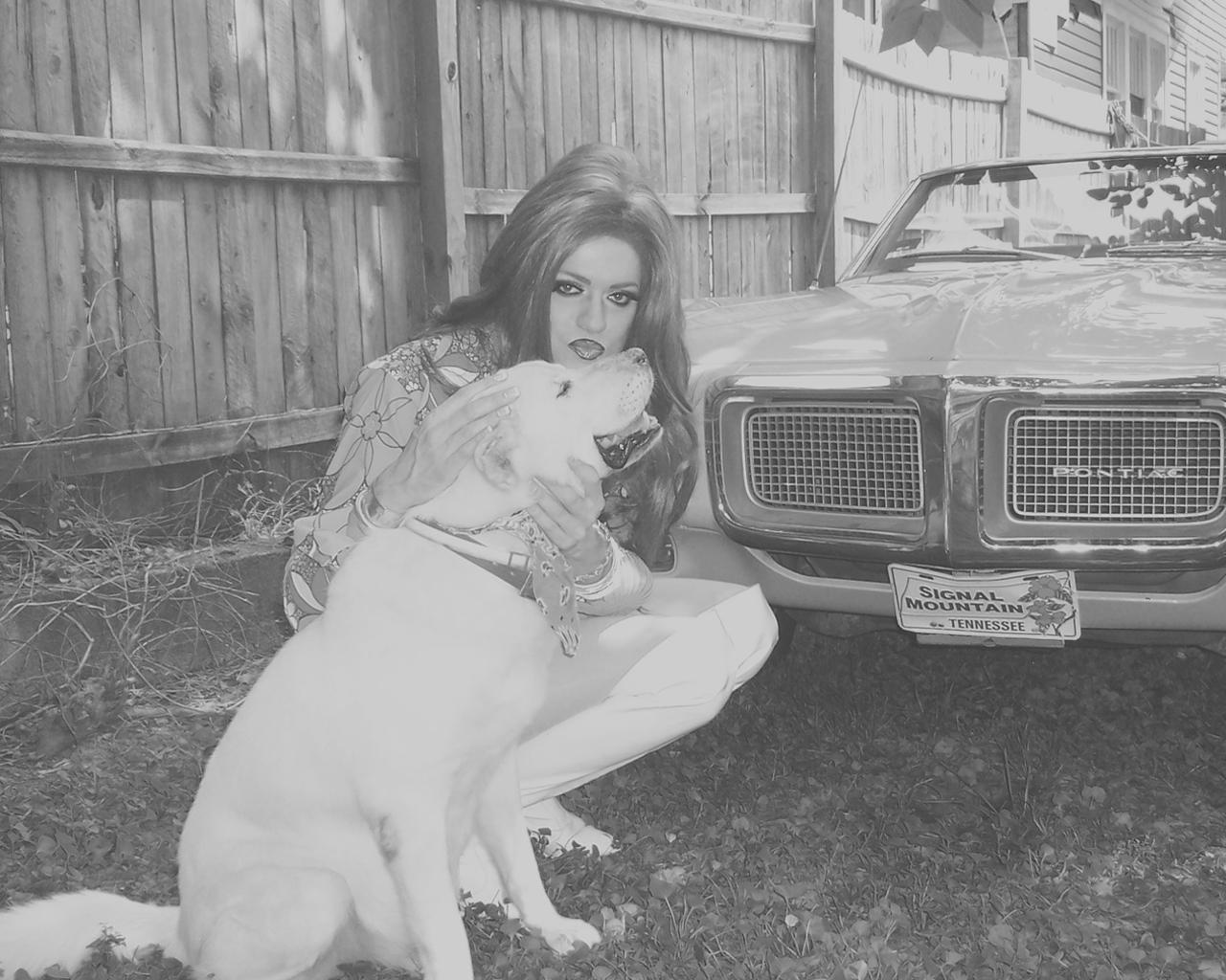 Black & White photo of shadow , veronica and 1969 firebird